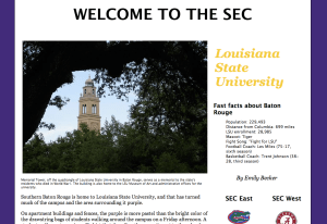 It’s my first foray into building from a blank slate to a fully-functional website with inside pages, media and CSS styling. We were given content for two schools, LSU and Florida, and an introduction story, then told to create something that follows HTML/CSS and journalistic design rules.